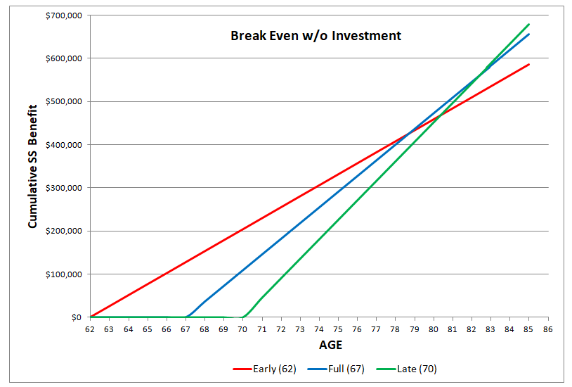 **None of these break-even figures are taking into consideration if you were to receive the Social Security and invest the funds. This scenario, would push the break-even point out even further.